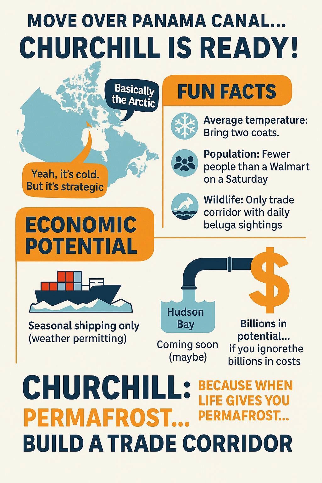 Port Nelson, as proposed through the NeeStaNan Utility Corridor, sits south of Churchill and closer to existing inland transportation networks. Its development would introduce a second marine outlet within the same regional system. That additional outlet changes how risk is distributed across the corridor. Cargo can be staged inland and directed to the port that is operational at a given moment. Ships approaching Hudson Bay have an alternative if conditions deteriorate at one location. Rail disruptions affecting one route do not necessarily shut down the entire system.